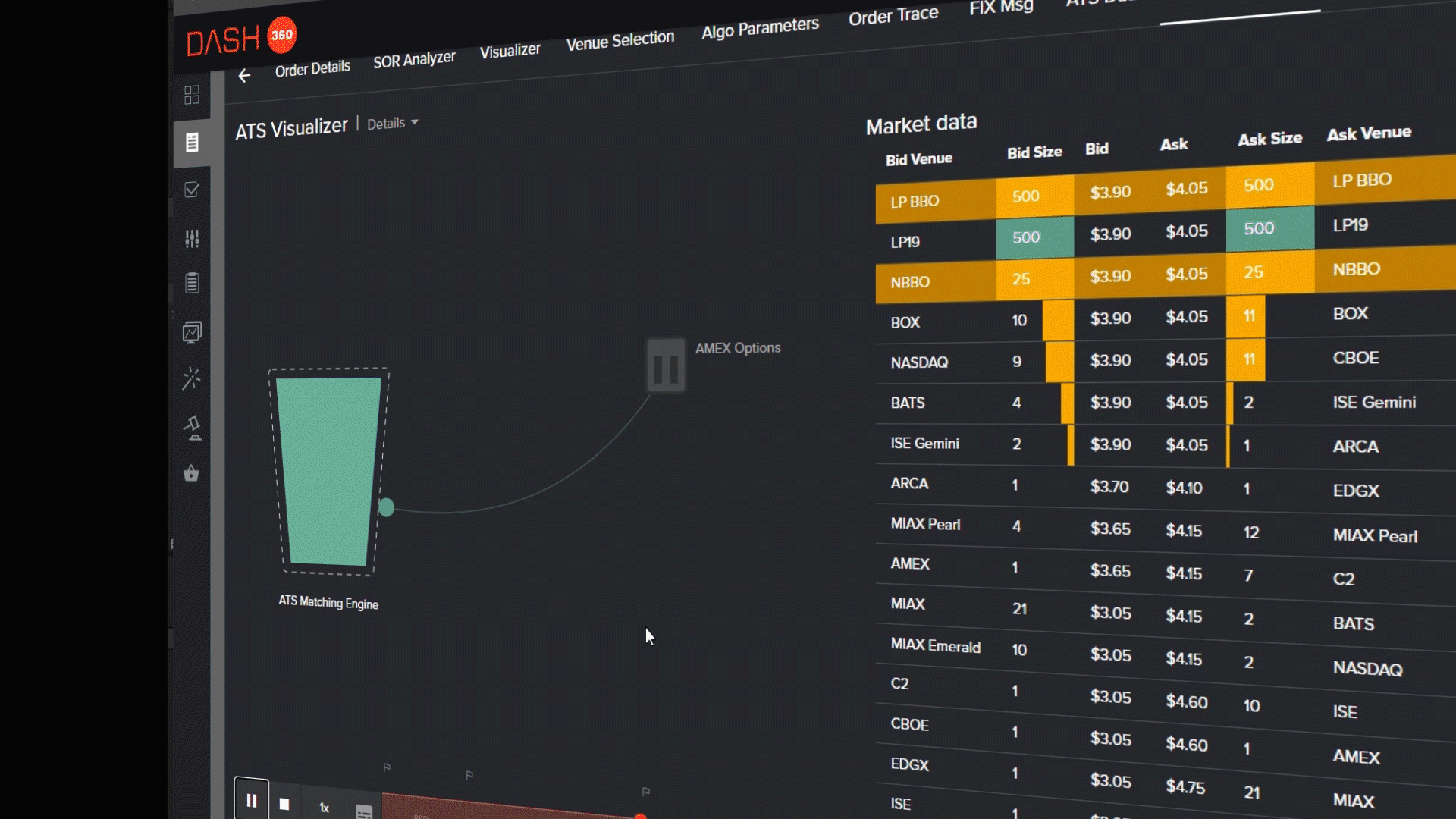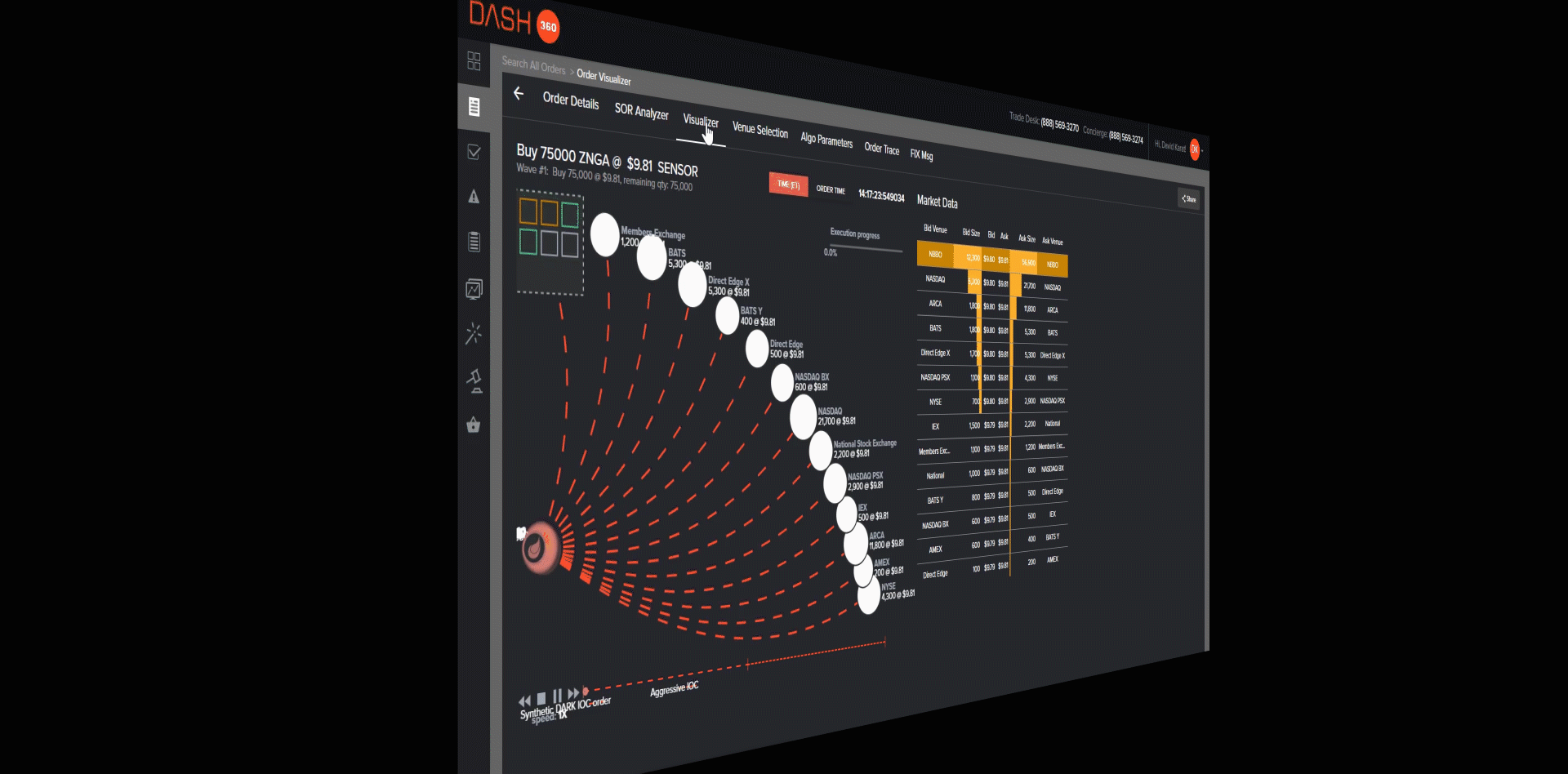 Enjoy a playback of your order to see just how smart SENSOR is. Witness the calibration engine in action, with visual interpretations of both transport and matching-engine latencies, color-coded volume-capture performance rates and detailed costs broken down by fill.